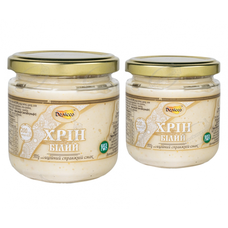 Ingredienti: radice di rafano 65%, acqua, zucchero, olio di semi di girasole, sale da cucina, correttore di acidità: (acido acetico), amido di patate modificato, stabilizzante: (E415), antiossidanti: (metabisolfito di sodio, E300), conservante: (E200), aroma. Questo prodotto può contenere tracce di: SENAPE.