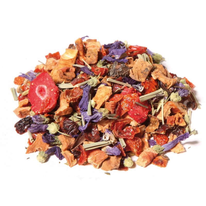 Ingredienti: te verde 83%, mela , fiori di ibisco, bacche di lampone 2%, petali di fiori di fiordaliso 1.3%, aromi .