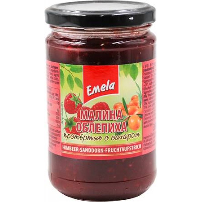Marmellata di lamponi "Emelya", olivello spinoso tritato con zucchero (350 g)