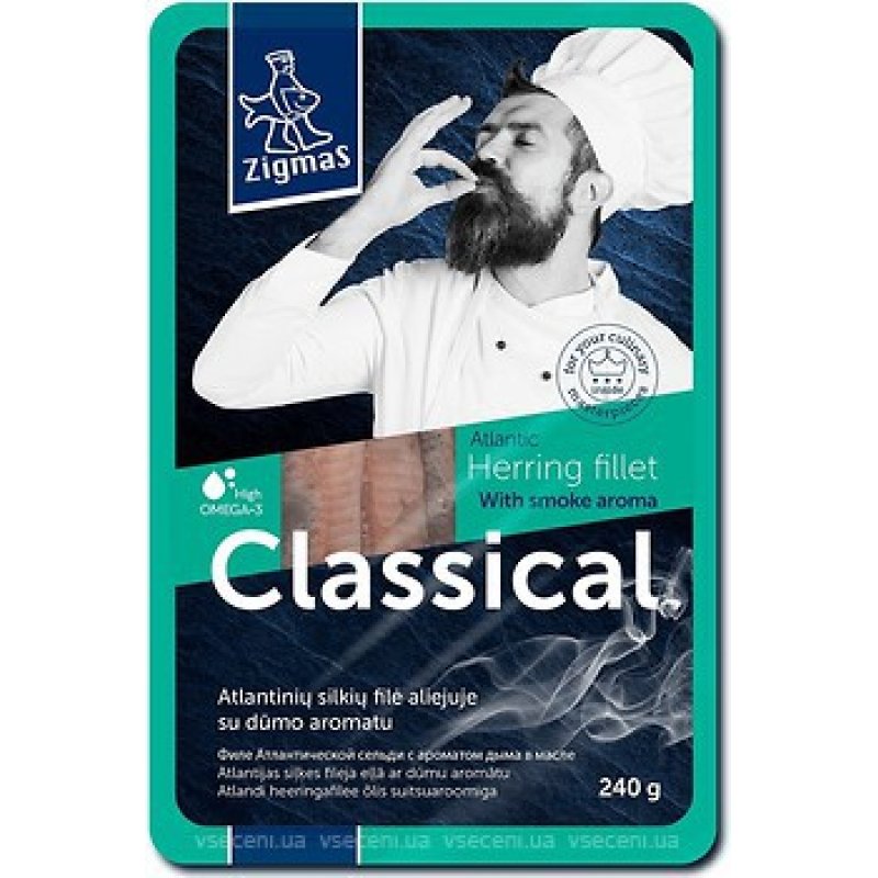 Filetto di aringa "Zigma" sott'olio, aromatizzato al fumo (240g)