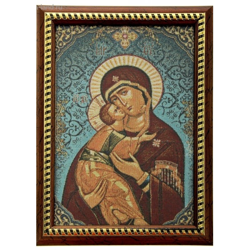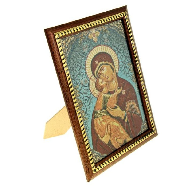 Икона в рамке "Божья Матерь Владимирская", гобелен представляет собой святое изображение, вытканное на ткани и вставленное в деревянную рамку со стеклом. На обратной стороне иконы есть подставка, поэтому удобно располагать такую икону на столе. Икона полностью соответствует канонам Русской Православной Церкви. Упакована в оригинальную коробку и выглядит по -настоящему богато - будет отличным подарком с духовной составляющей.
