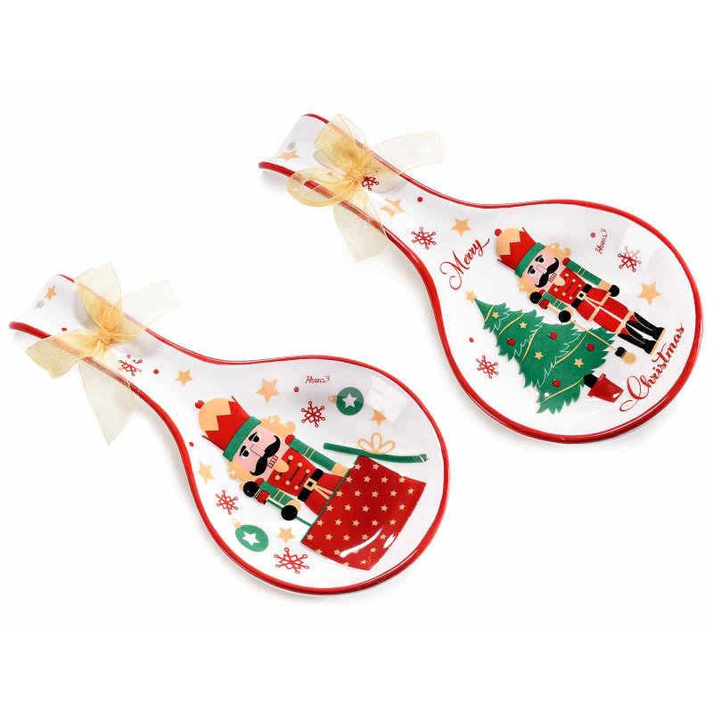 Poggiamestolo natalizio in ceramica con fiocco 12 x 24 cm