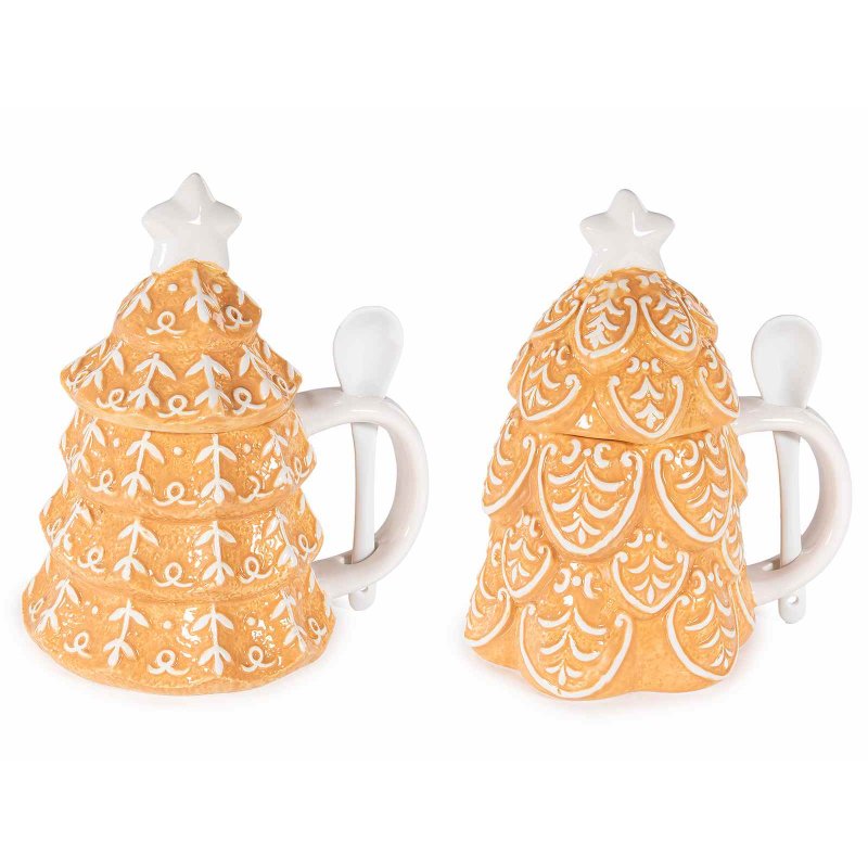 Tazza in ceramica a forma di albero di Natale con coperchio e cucchiaio, 400 ml