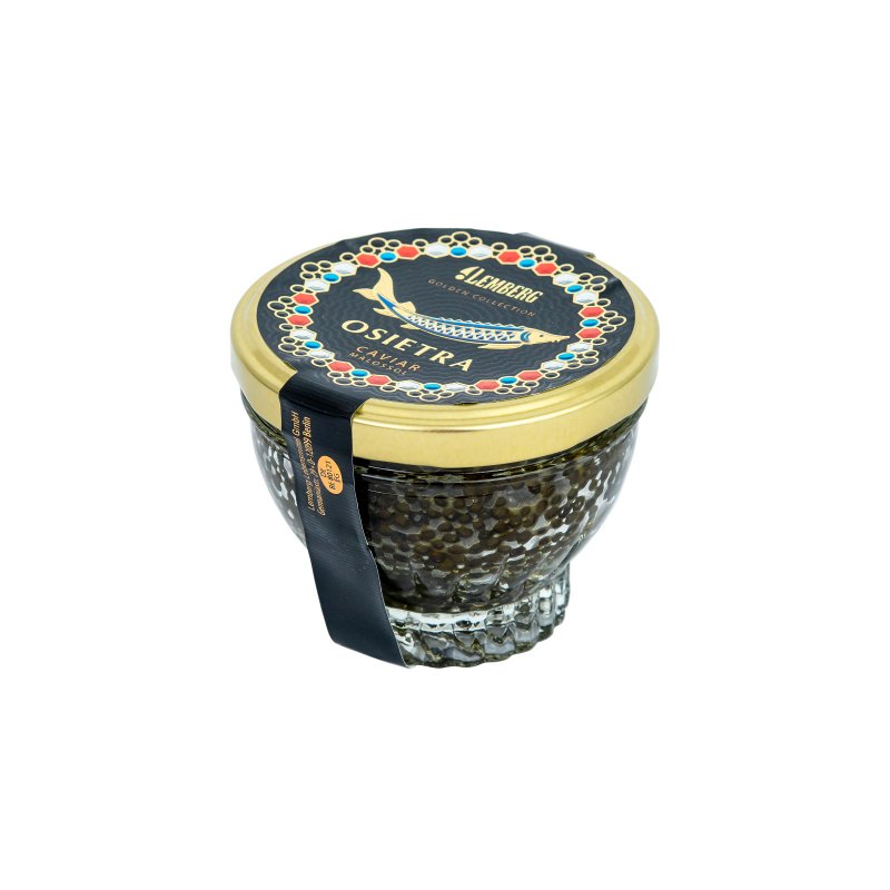 Ingredienti: uova di STORIONE bianco (ACIPENSER TRANSMONTANUS), sale, Е285. Conservare in frigo a temperatura a -2°C +2°C.
