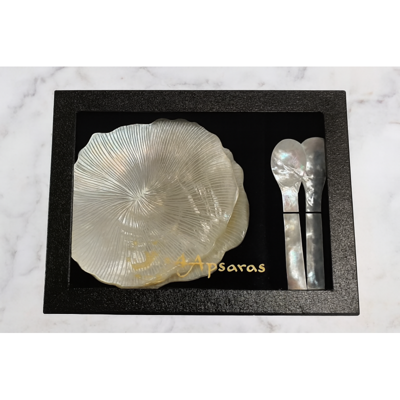 Scopri il lusso del caviale con questo raffinato set composto da 2 piattini e 2 cucchiaini in madreperla naturale. Ideale per servire caviale senza alterarne il sapore, perfetto per cene gourmet e regali di classe.