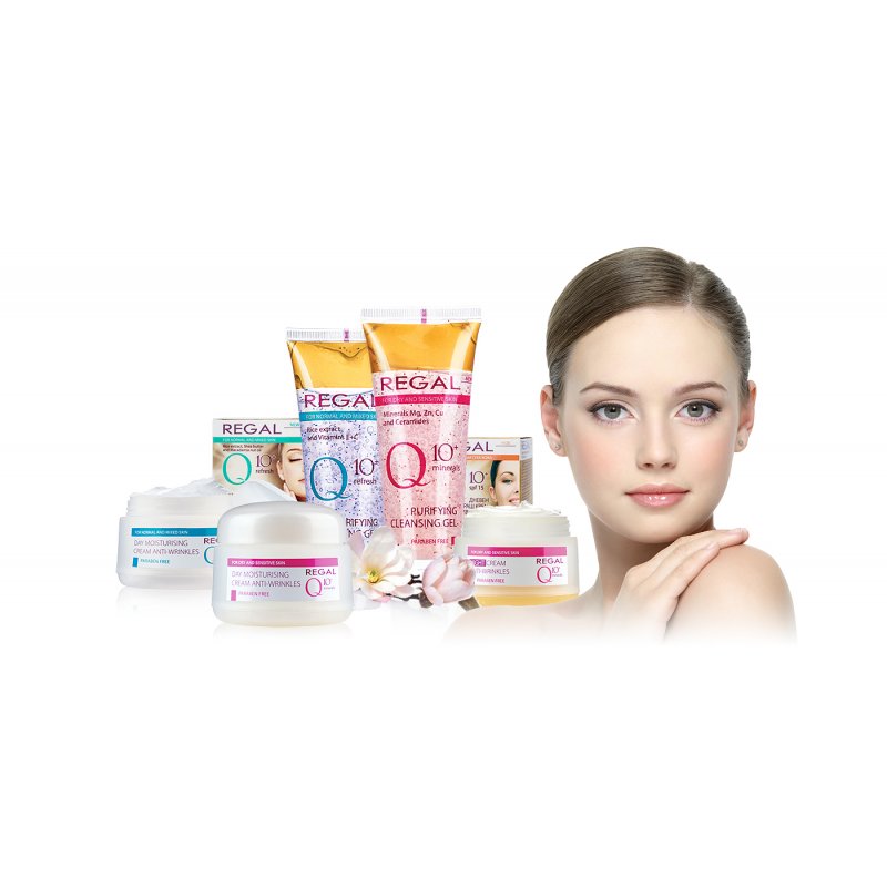 Regal Q10+ Crema Giorno Energizzante antirughe + con estratto Goji Baya SPF 20 per una pelle fresca, radiosa e più giovane. L'estratto di bacche di Goji è ricco di aminoacidi, polisaccaridi, antiossidanti e micronutrienti. La crema aiuta a eliminare le rughe esistenti e previene la comparsa di nuove rughe. Protegge contro l'invecchiamento precoce, la comparsa di pigmentazione causata dai raggi ultravioletti A e UVB con SPF 20, donando giovinezza, energia e bellezza alla tua pelle.