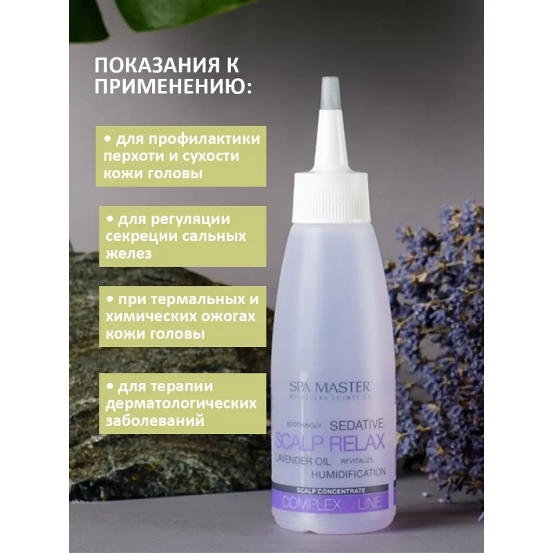 Il concentrato di olio di lavanda è stato studiato per idratare e ripristinare il cuoio capelluto secco e sensibile, oltre ad alleviare arrossamenti, irritazioni e desquamazione. Ha un effetto sedativo, calmante, rilassante, idratante e rigenerante. Applicare lungo le divisioni sulla pelle umida dopo lo shampoo. Esegui un massaggio alla testa. Non è consigliabile lavare con acqua!