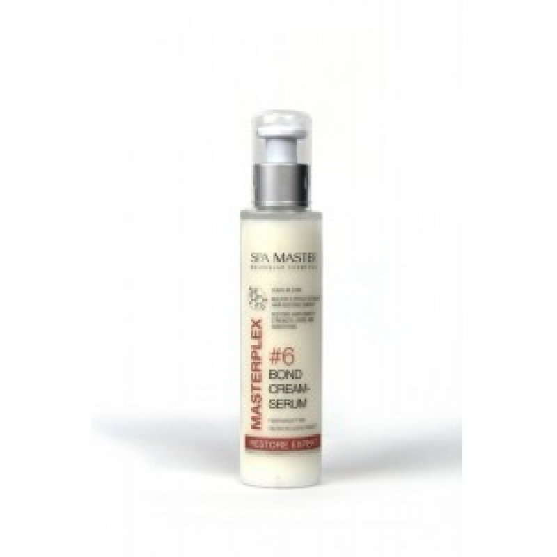 SPA MASTERPLEX n.6 BOND CREAM-SERUM L'elisir rigenerante per capelli contiene il complesso brevettato FiberHance BM. Leviga la struttura danneggiata dei capelli, mantiene efficacemente la loro salute, rimuove la morbidezza, elimina le doppie punte. Prepara perfettamente i capelli per qualsiasi stile, dona ai capelli forza e protezione da danni meccanici e influenze ambientali. Mantiene la lucentezza lucida dei capelli.Metodo di applicazione: Applicare una piccola quantità di crema lungo la lunghezza dei capelli, senza influenzare le radici, prima dello styling o dopo.