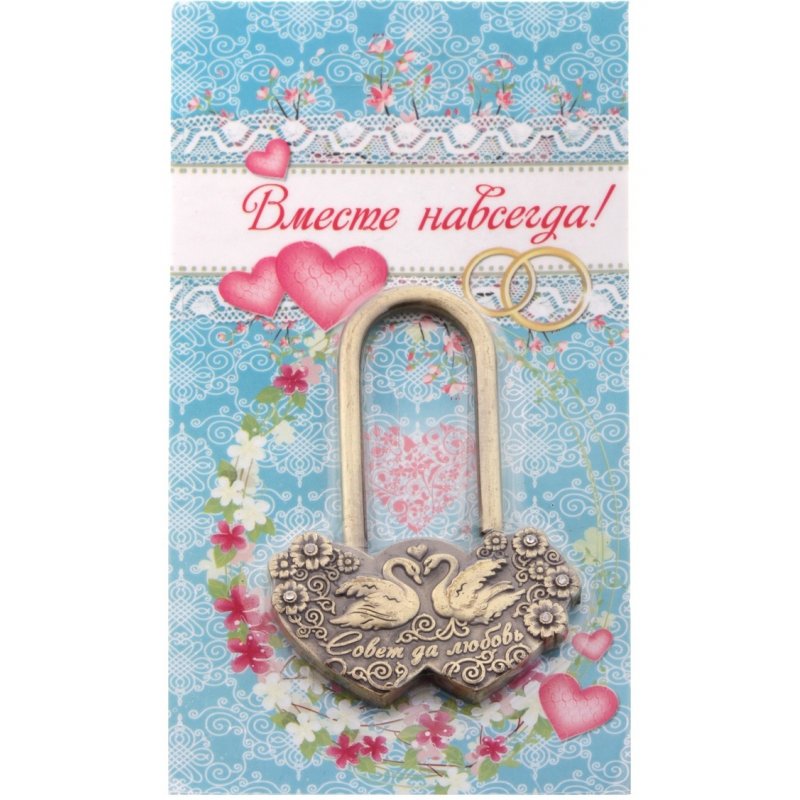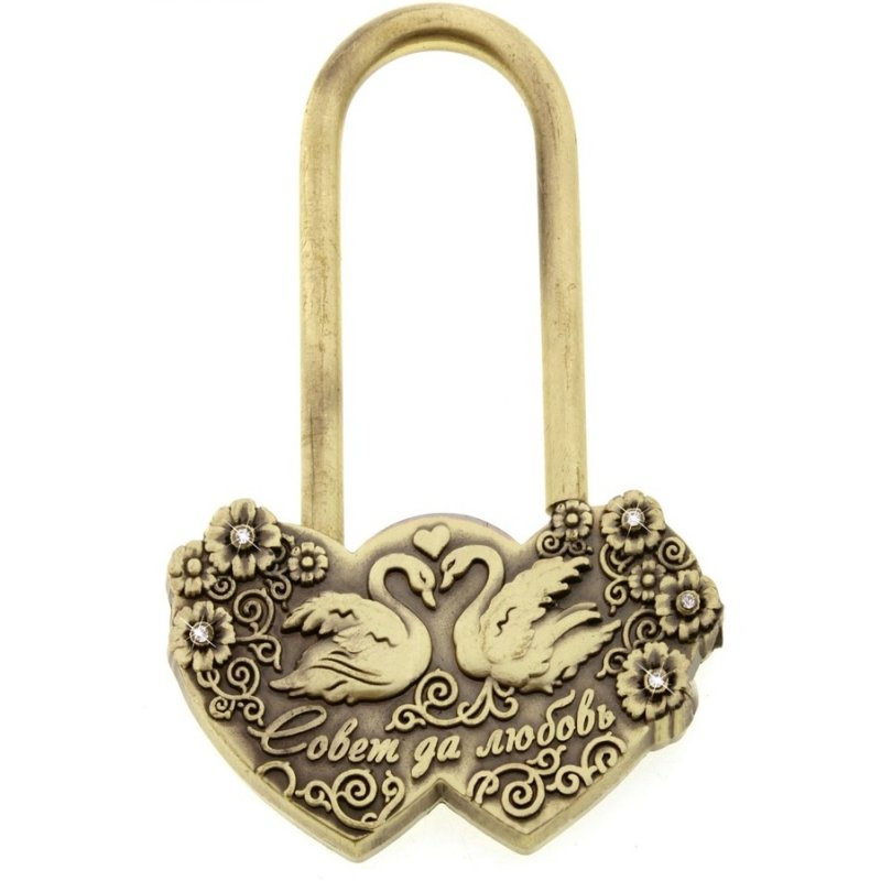 Замок свадебный "Совет да любовь" изготовлен из металла под бронзу, который стойко переносит дожди и морозы и гарантирует долговременное напоминание о свадебном торжестве. Сцепной механизм надежно держит замок в закрытом состоянии.