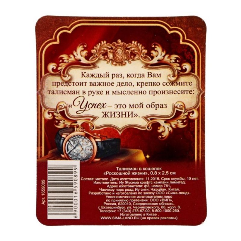 Talismano da portafoglio "Una vita di lusso" 0,8 x 2,5 cm
