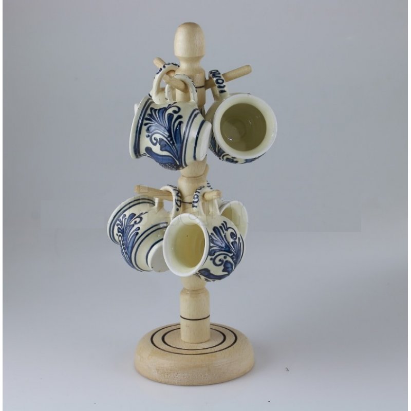 Set di 6 botti in ceramica supporto in legno 28 cm