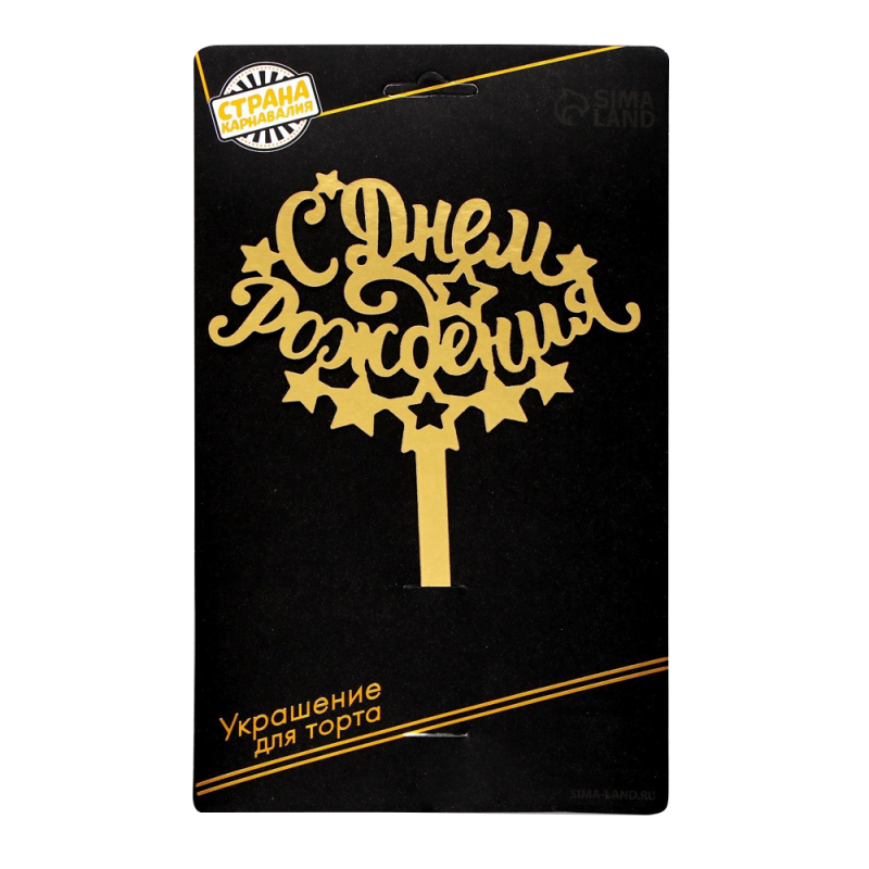Decorazione per torta di buon compleanno, cartone, oro, 22x14 cm