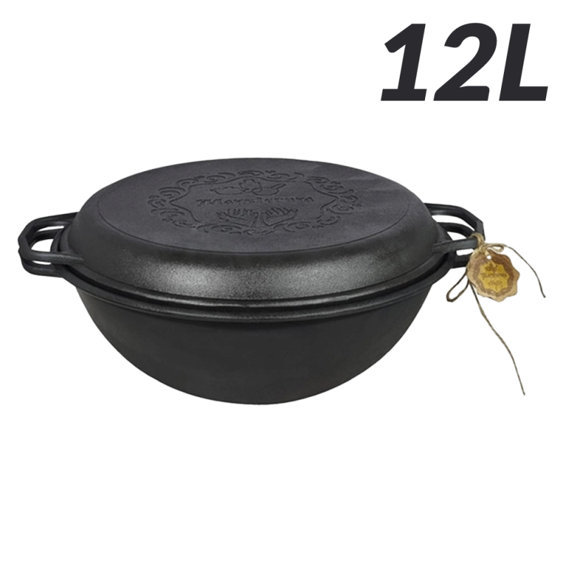 Calderone uzbeko in ghisa, 12 litri, con coperchio per padella